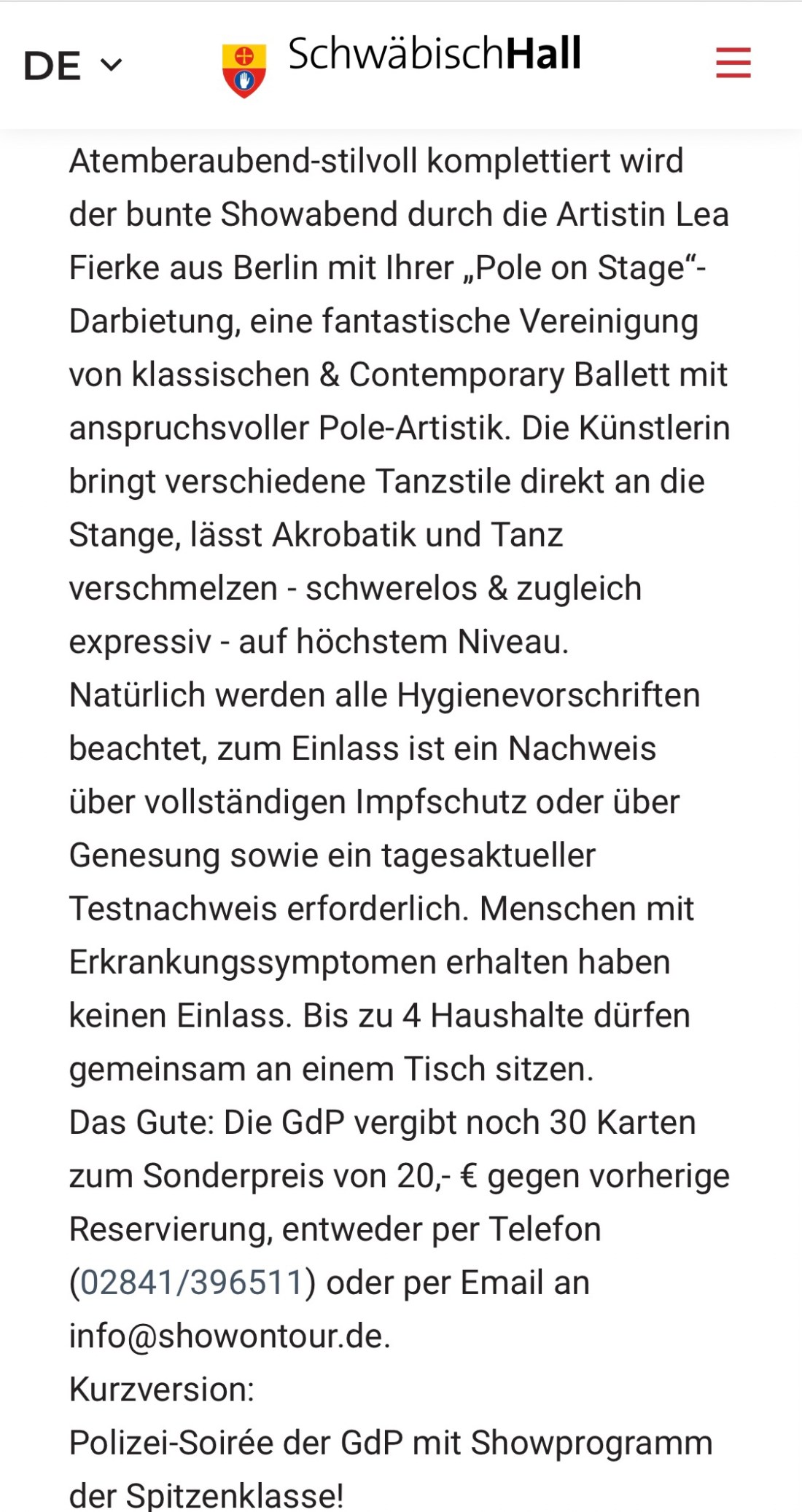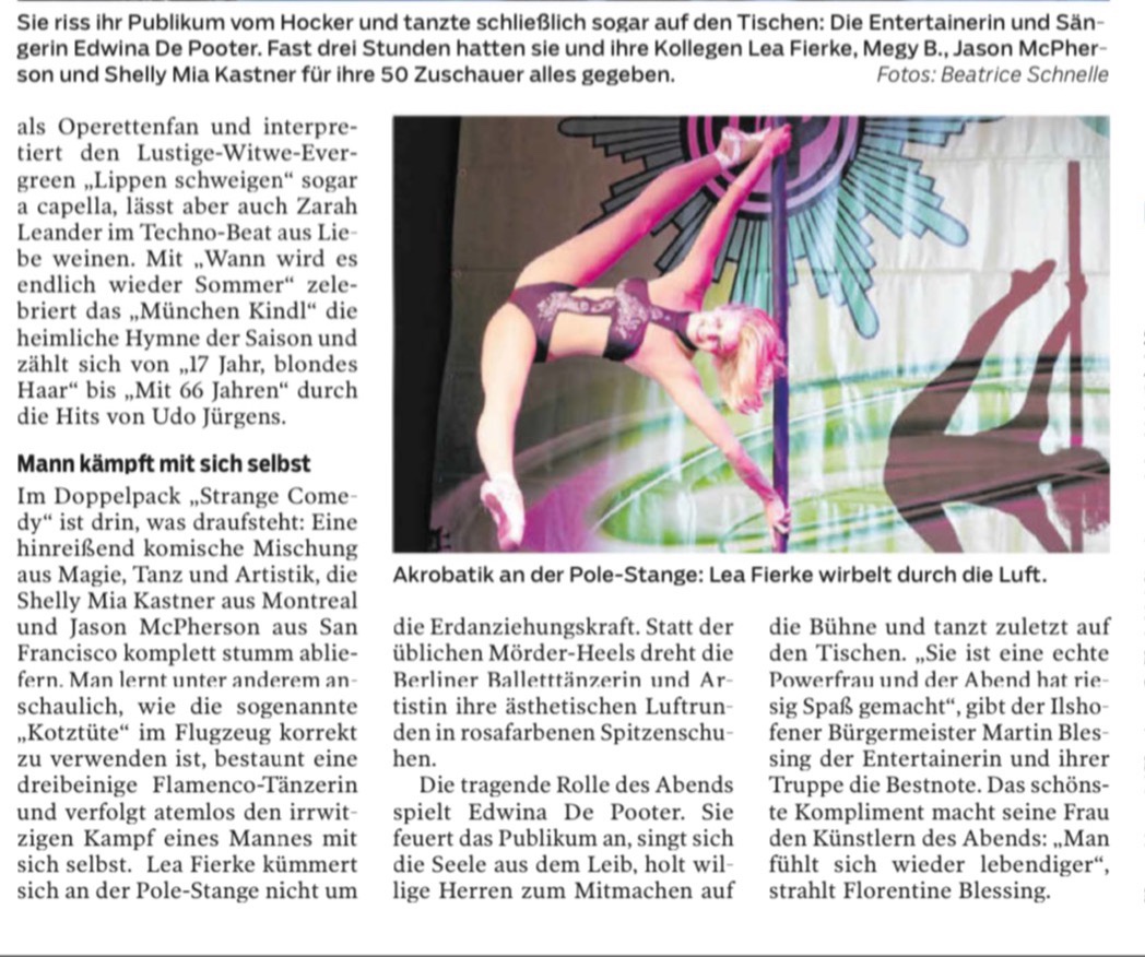 Lea and Evelyn have gathered many years of experience on national/ international stages, in a variety of shows, in musicals and in german tv shows and have, since founding POLE ON STAGE, performed extensively together. With POLE ON STAGE, they want to create a new form of pole artistic aesthetics. Pole artistry and ballet share many common characteristics such a ease, grace and elegance.Lea and Evelyn are flexible in their design and like to customize to suit your corporate requirements, whether it be a harmonious gala show, event show, trade fairs or company celebrations. They can also create thematic shows on request. When you book POLE ON STAGE, you can expect an expressive performance!